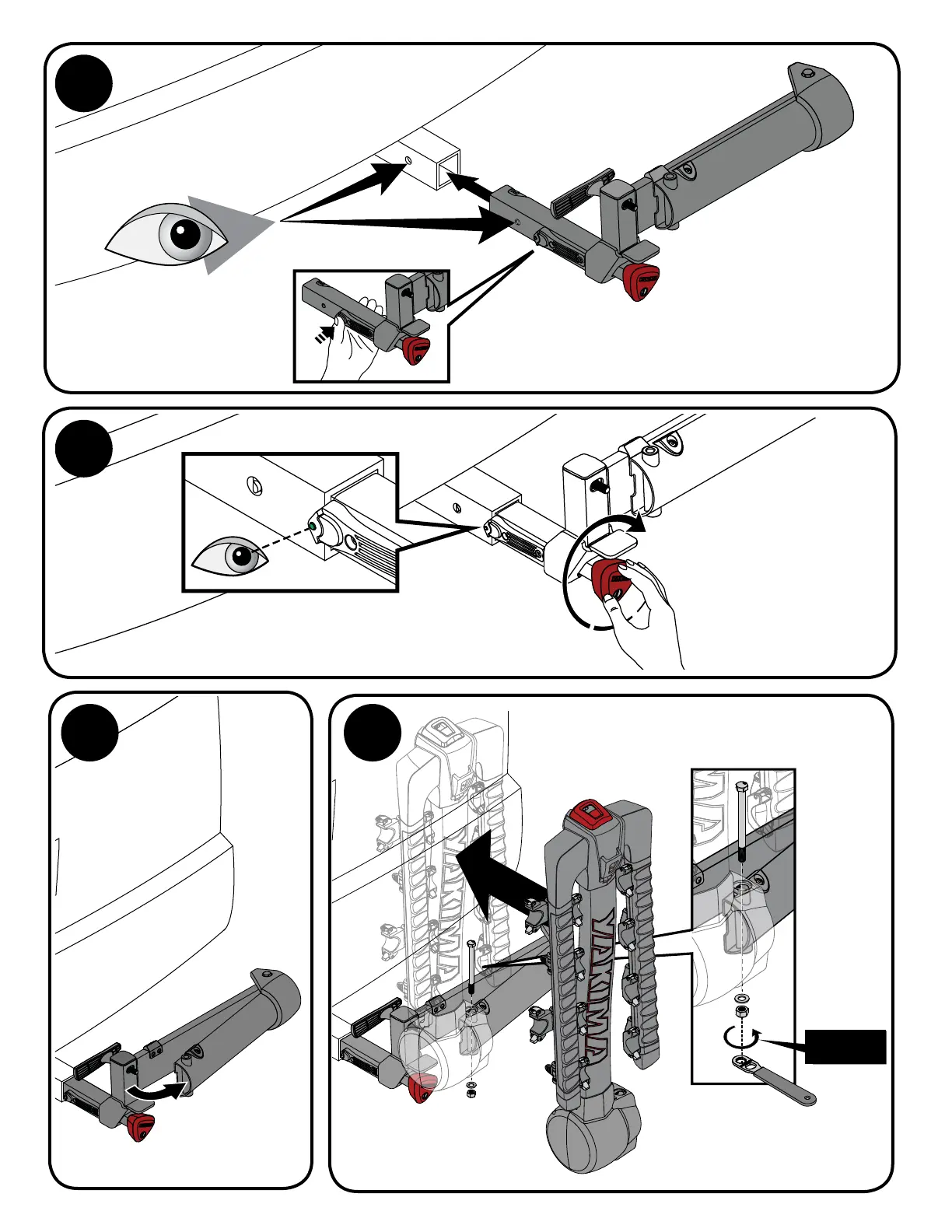 Yakima FullSwing - Installation Steps; Step 1: Attach Mounting Bracket; Step 2: Install Base Unit; Step 3: Attach Base to Receiver