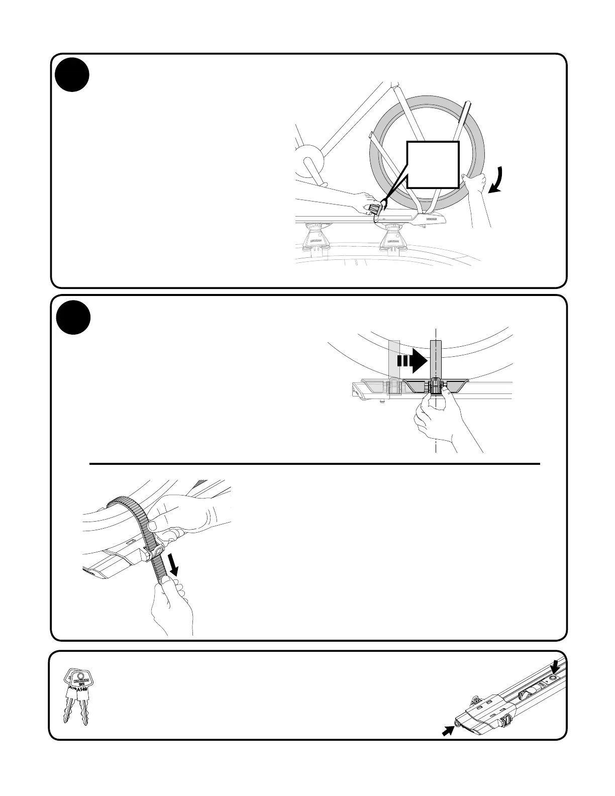 t Passer la sangle entre les rayons et l’insérer dans la fente sous le cliquet.