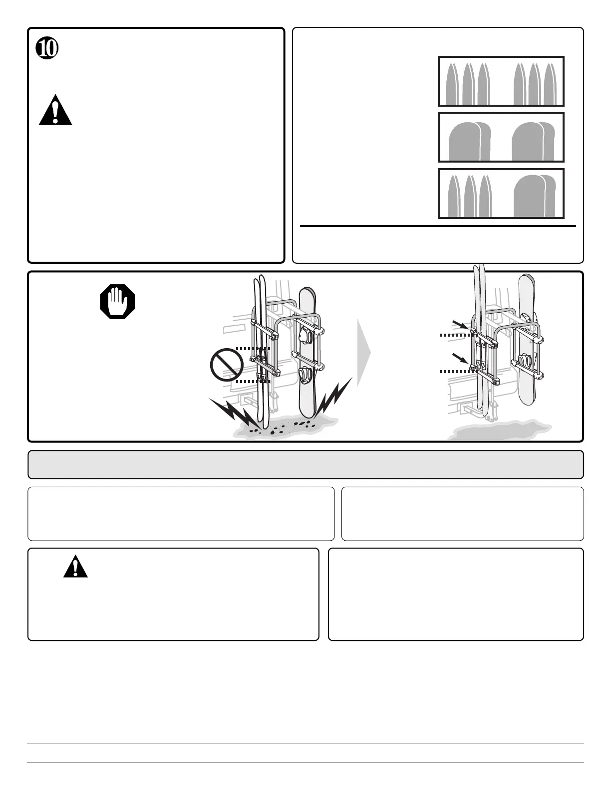 DO NOT MIX BOARDS AND SKIS ON SAME SIDE.