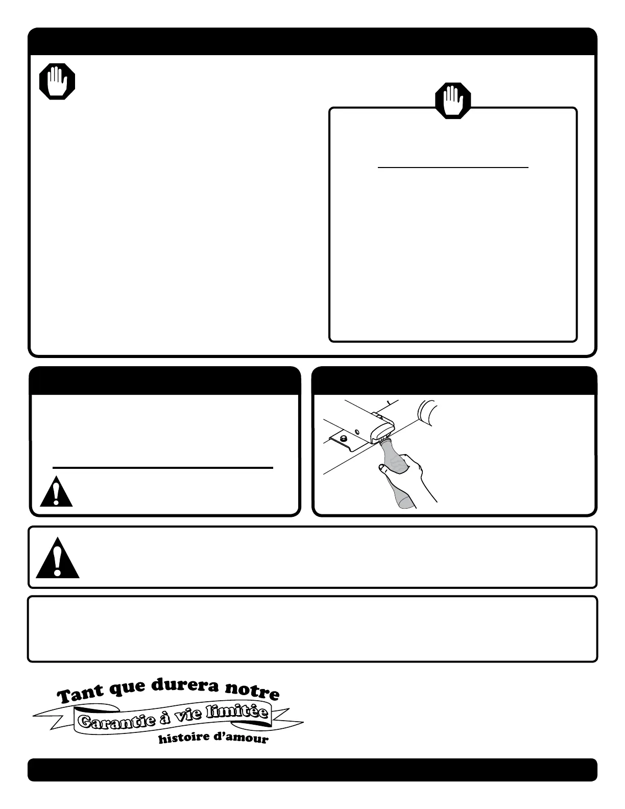 Les dispositifs de fixation peuvent se desserrer à la longue. Les inspecter avant chaque