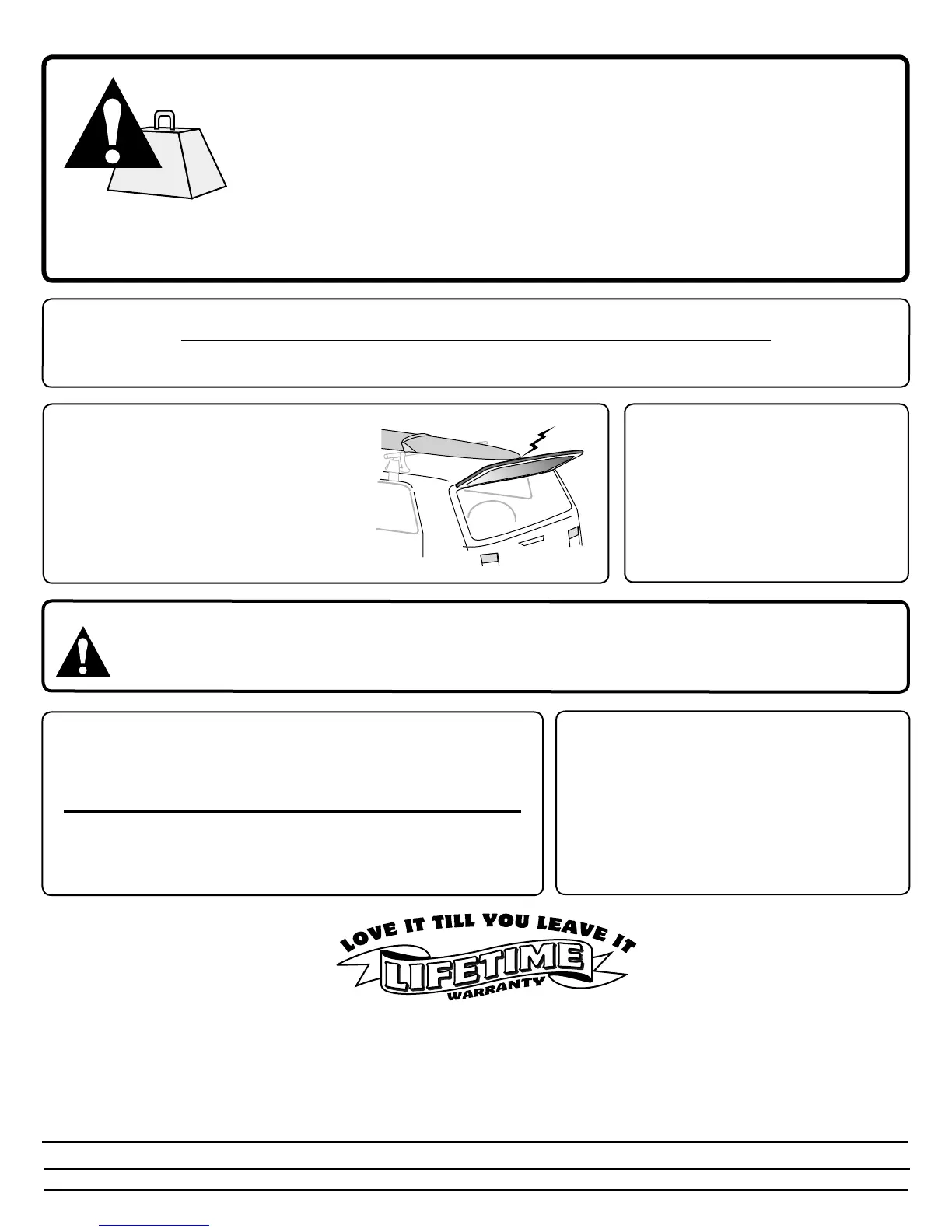 WARNING: BE SURE ALL HARDWARE IS SECURED ACCORDING TO INSTRUCTIONS. ATTACHMENT