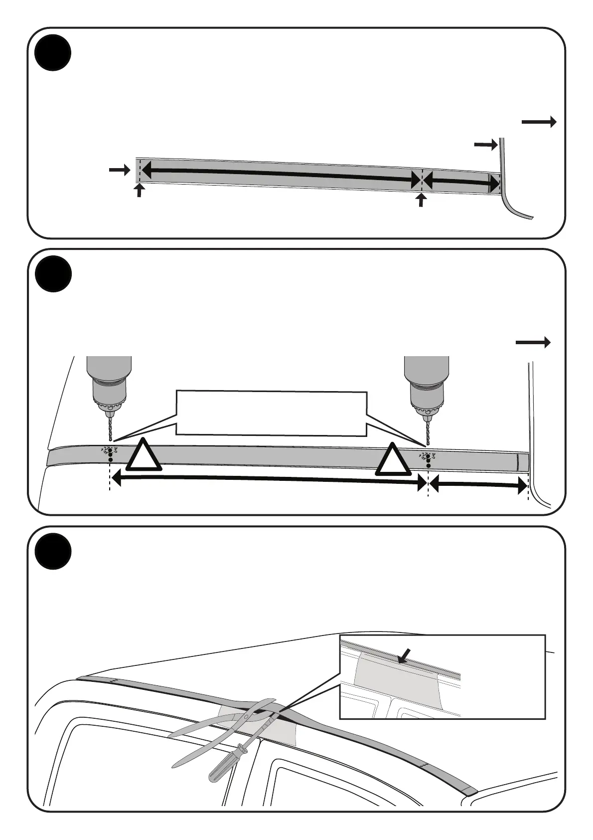 (not glass edge) back along rubber roof channel trim. Ensure to measure from the