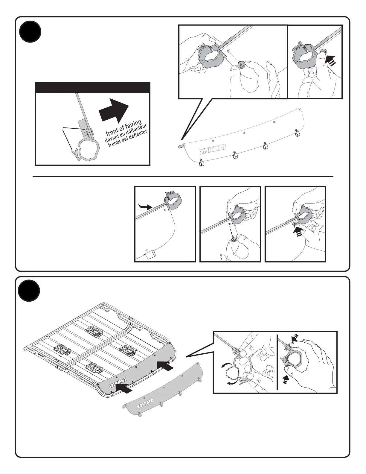 Flex the fairing clips around the bar. Squeeze the clips to secure them to the bar.