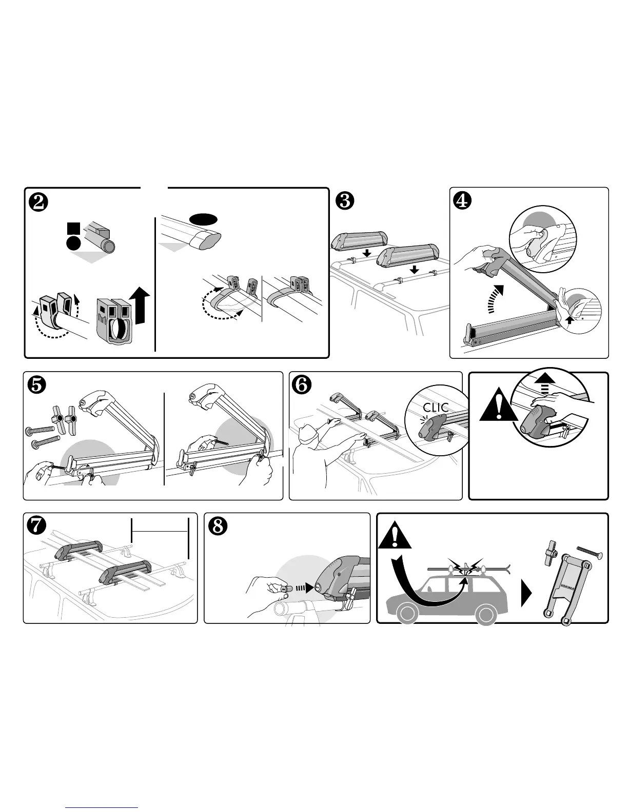 If your bindings touch car roof, install SkiLift (step 9).