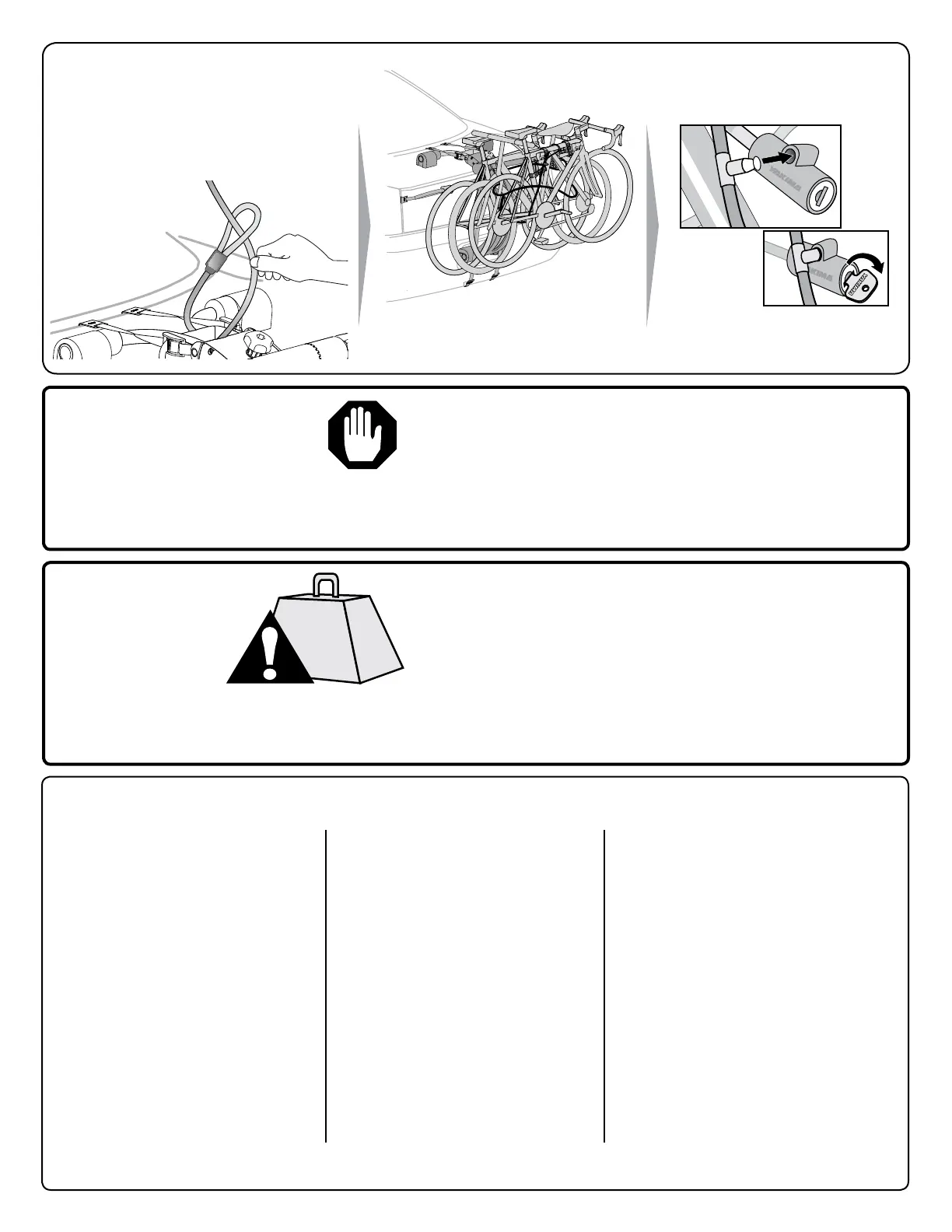 • La sujeción de los ganchos para vidrio de la puerta trasera a las correas superiores limitará la carga a 2 bicicletas.