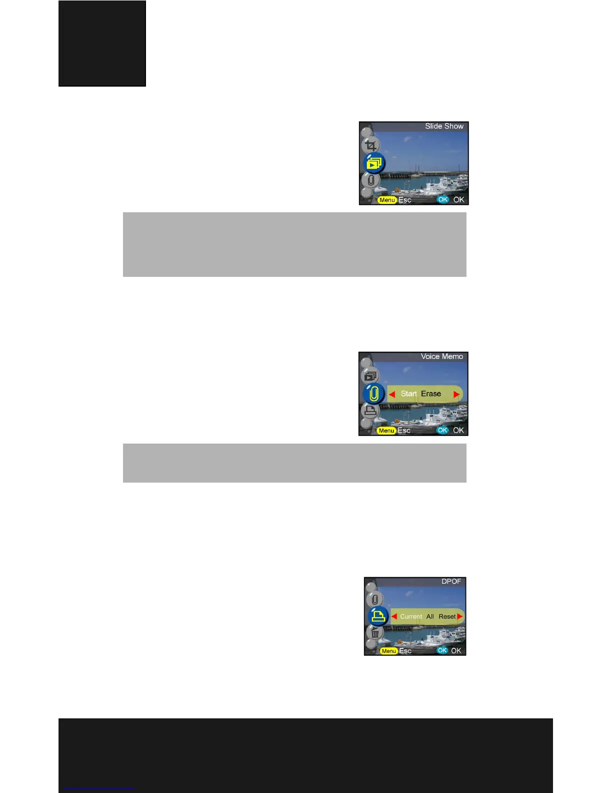 This function provides 20 seconds voice memo for still image. Select