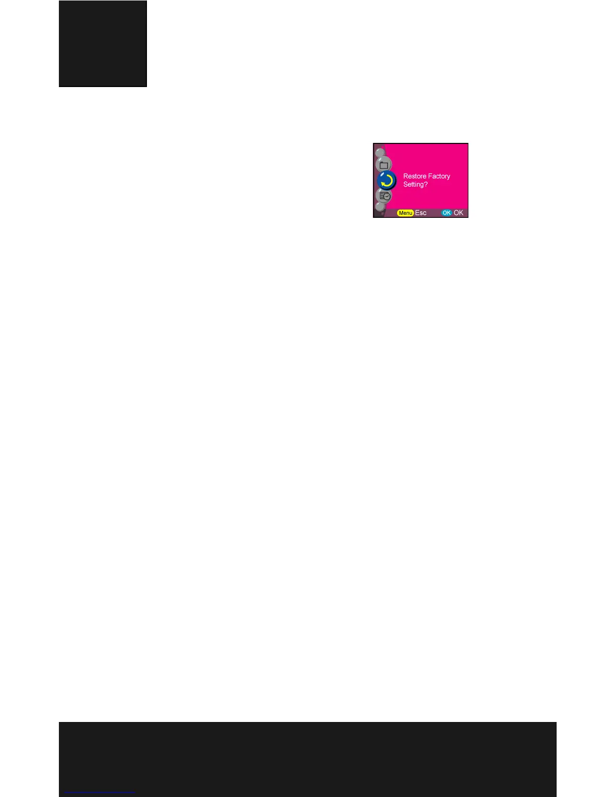Resets the digital camera to factory setting.