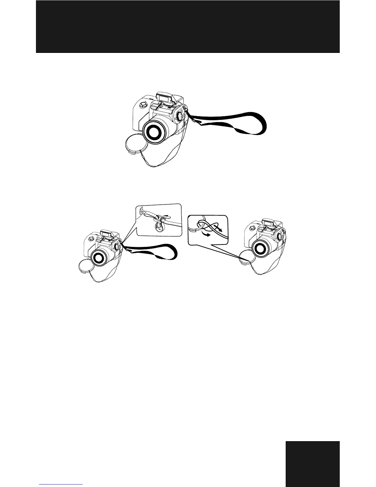 the lens cap. Adjust the strap to the desired length.