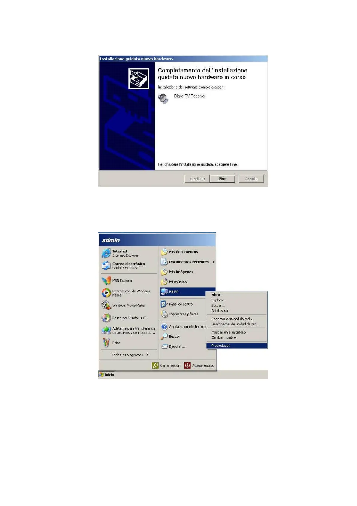 Favor apretar Inicio y luego hacer clique derecho en Mi Computadora. Hacer clique en