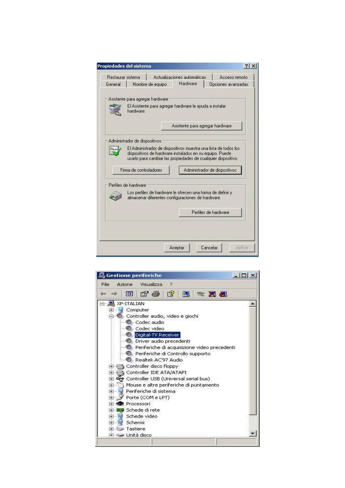 Scontroladores de sonido, video y juego y Ud. verá Digital-TV Receiver en la lista. Si Ud.