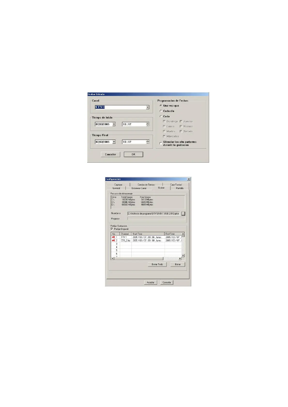 Nota: En el mismo período de tiempo, Ud. no podrá grabar 2 programas de diferentes frecuencias.