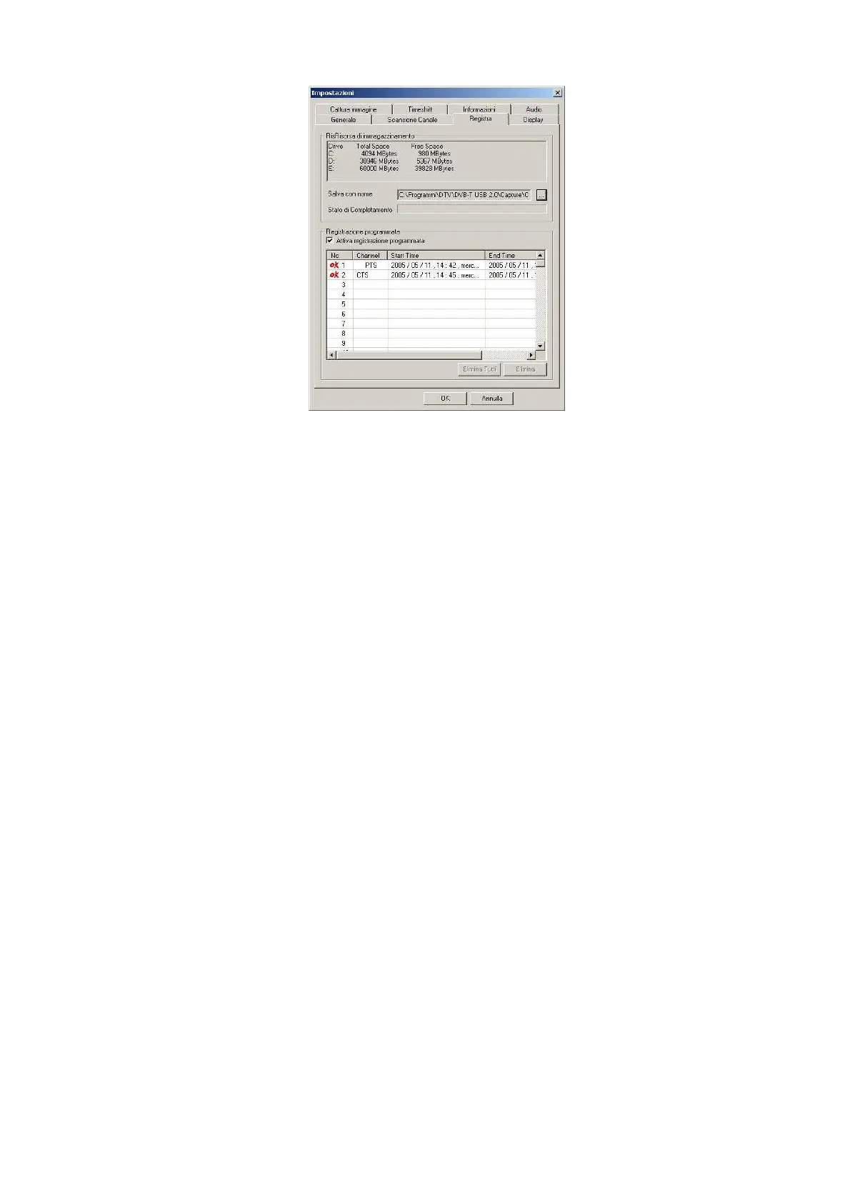 Nota: Non è possibile registrare contemporaneament due programmi provenienti da frequenze