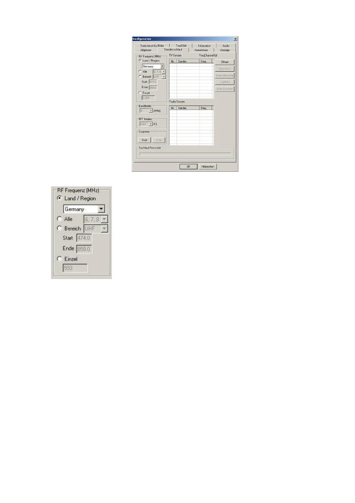 Wählen Sie VHF oder UHF und geben Sie danach ihren