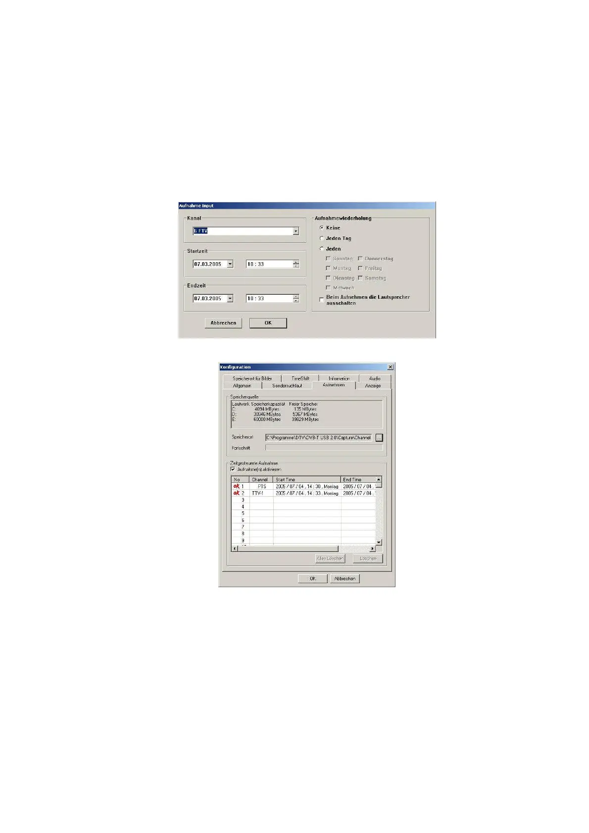 aufgezeichnet werden. Beachten Sie die Kapazität des Aufzeichnungsgerätes. Langandauernde