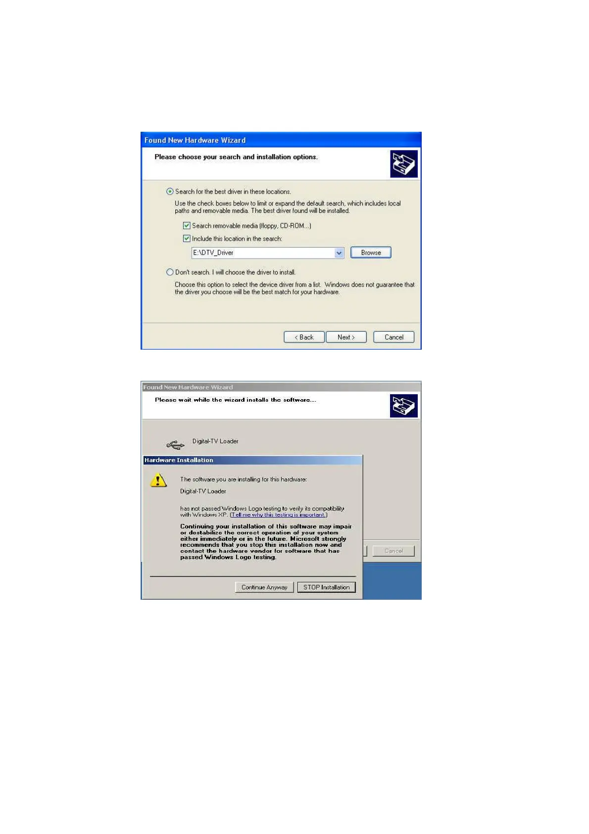 the driver location on CD-ROM directory. Choose \DTV_Driver.