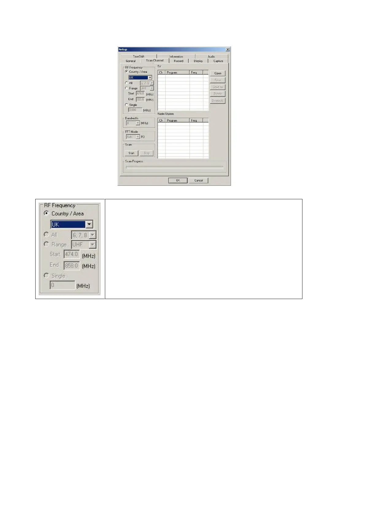 3. Click 『Start』to scan frequency based on the option of RF Frequency you select.