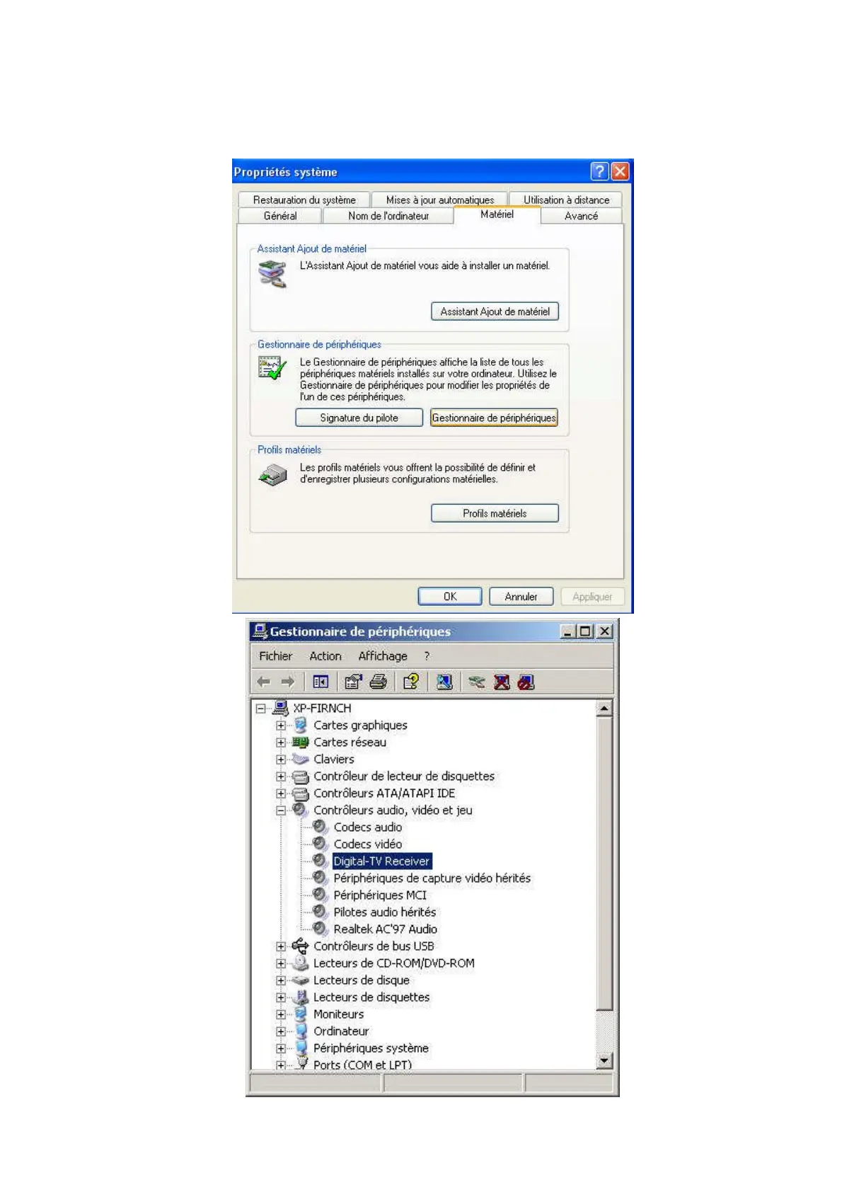 Contrôleurs de son, vidéo et jeuxet vous pourrez voir Digital-TV Receiverdans la liste.