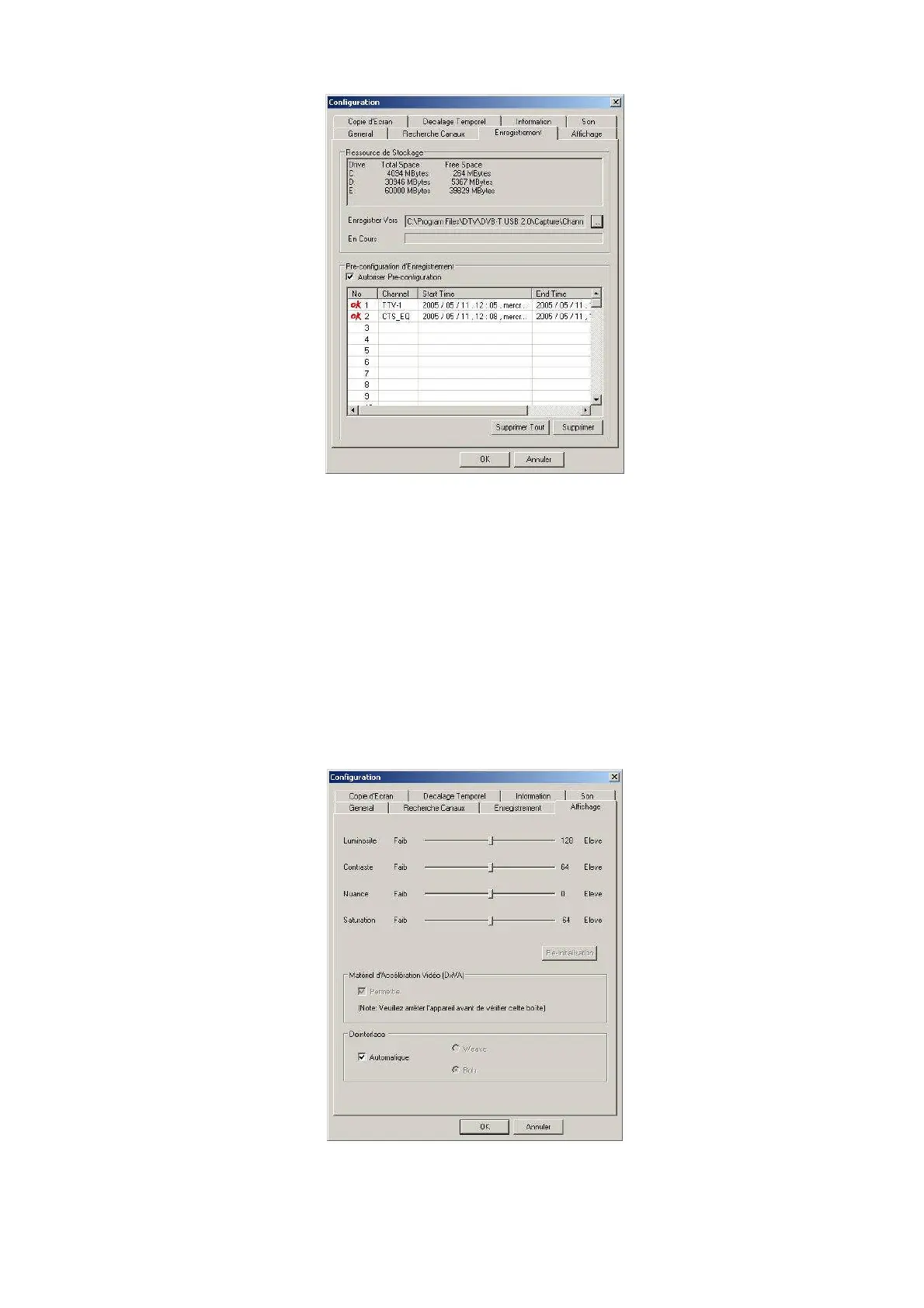 Note: Au même moment, vous ne pouvez pas enregistrer deux programmes depuis des
