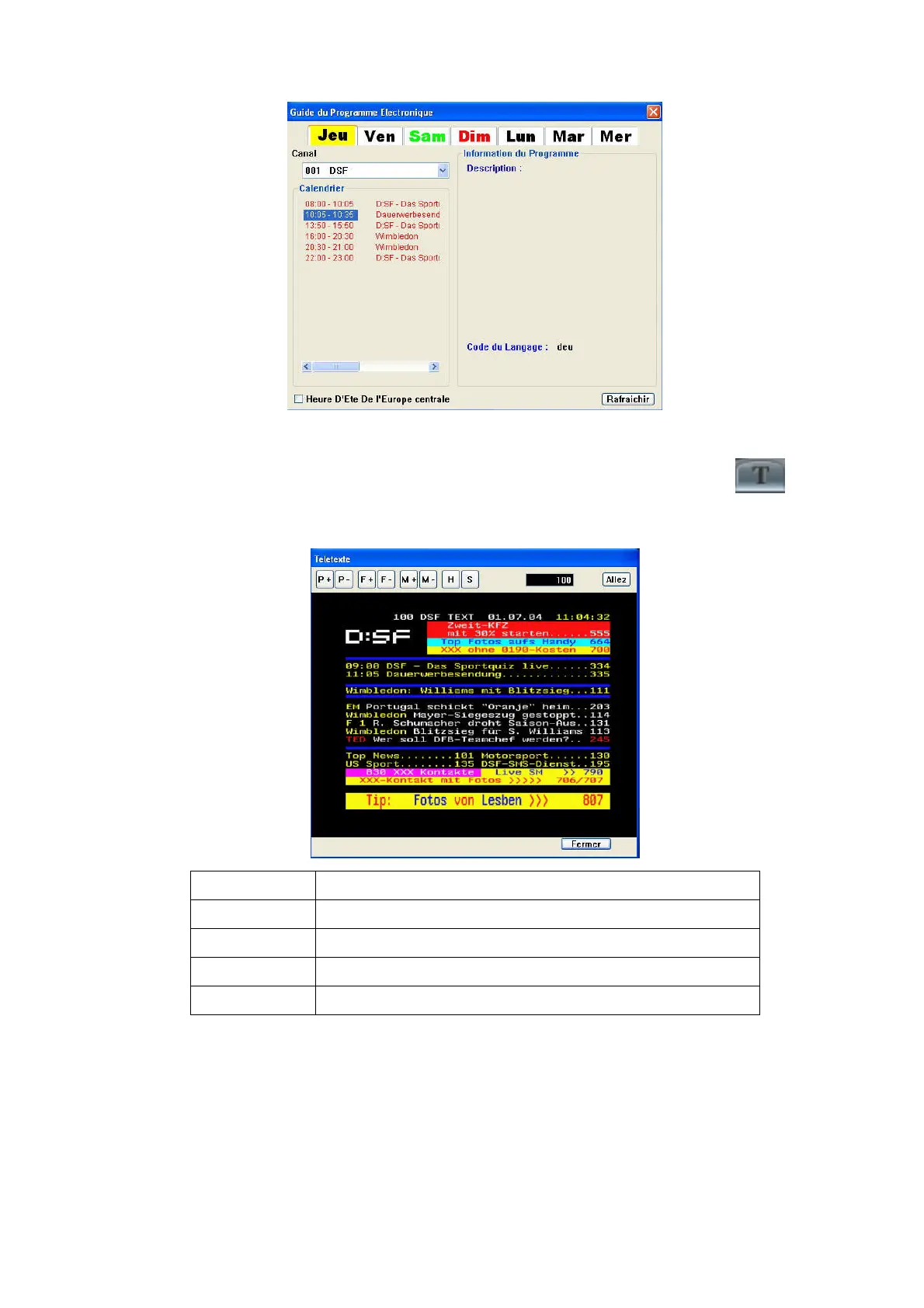 ※ Télétexte:Il s’agit d’une application de diffusion de mots et de chiffres. Vous pouvez