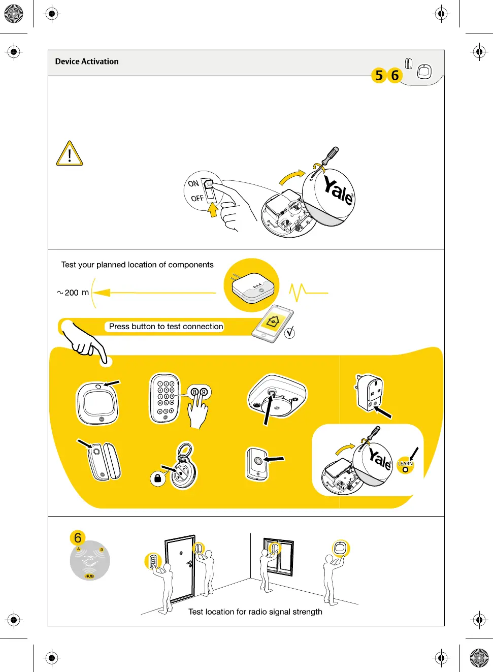 Once in walk test please press the learn button on each device to test the signal.