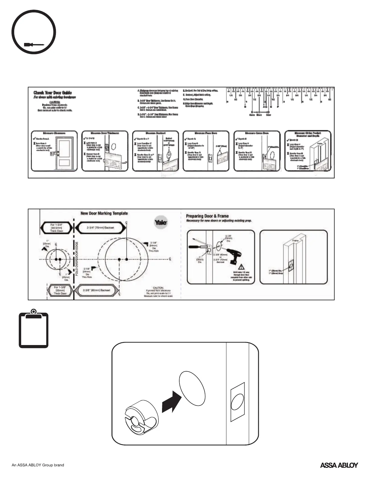 With door checker, use template from installation guide envelope to prep a new door that has not been predrilled for hardware.
