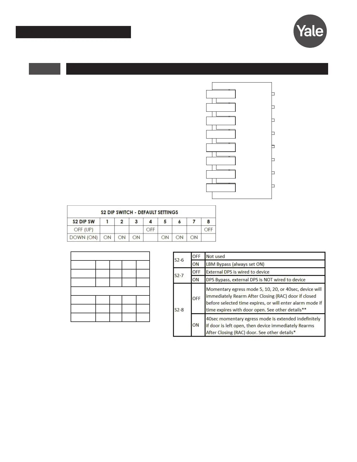 ** With S2-8 OFF (S2-4 and S2-5 set for 5, 10, 20 or 40sec), if door/DPS is open after selected time the alarm will