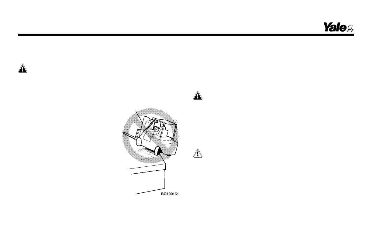 swing toward the edge. This can cause the lift truck to