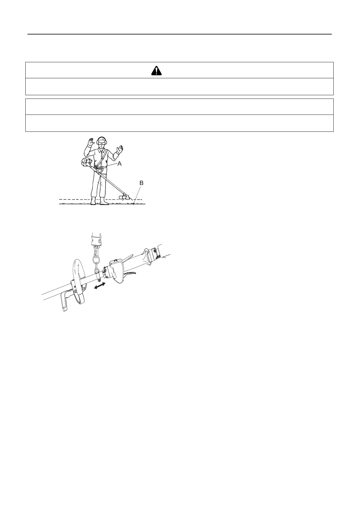 not use the unit if your feet can reach the cutting attachment when the unit is attached to the harness.