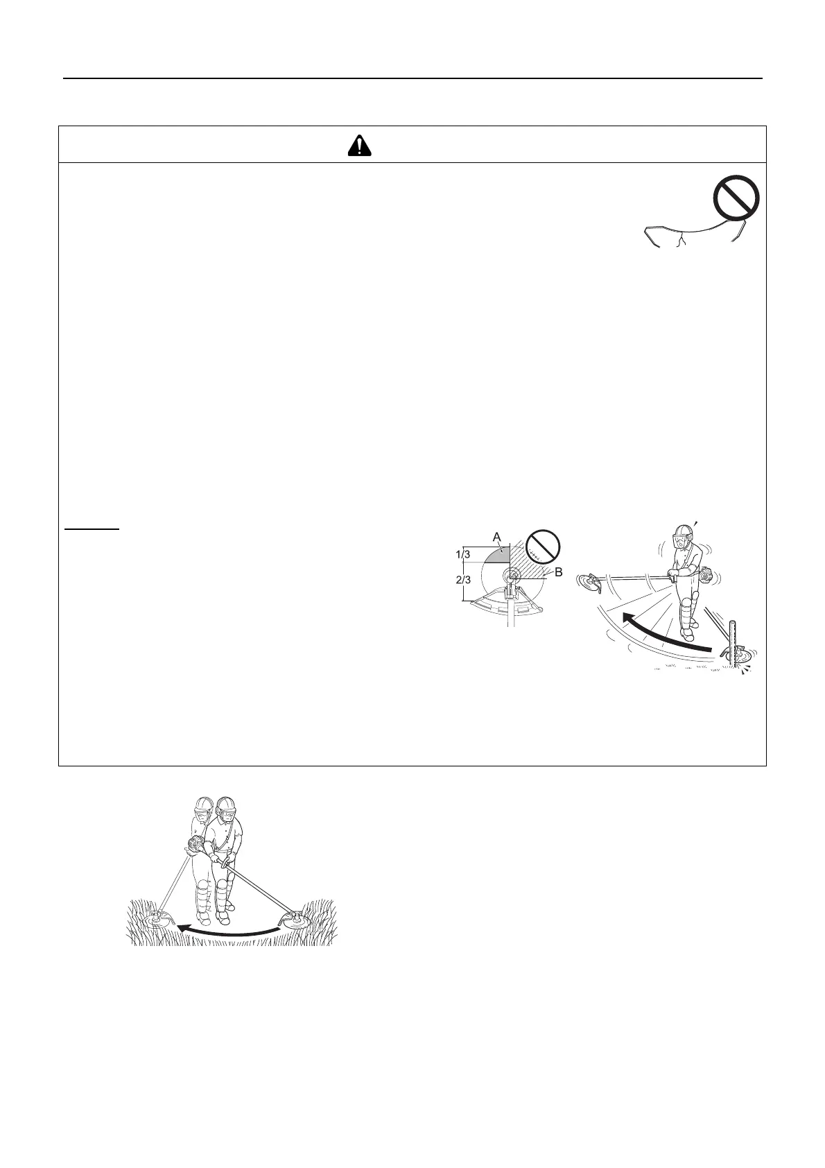 To prevent kickback, do not trim from left to right. Be careful to ensure that the trimmer blade does not strike any