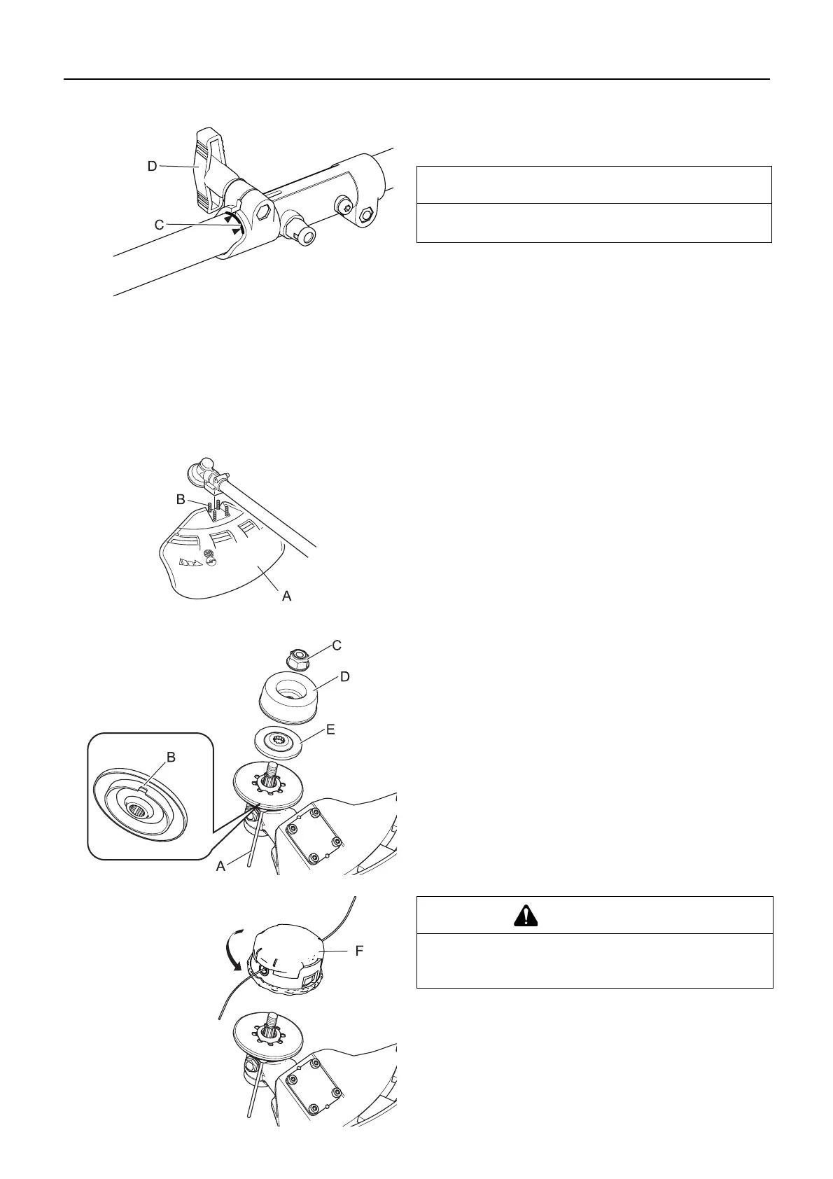 4. Avvitare la testina a filo di nylon (F) sull'albero (in senso an-