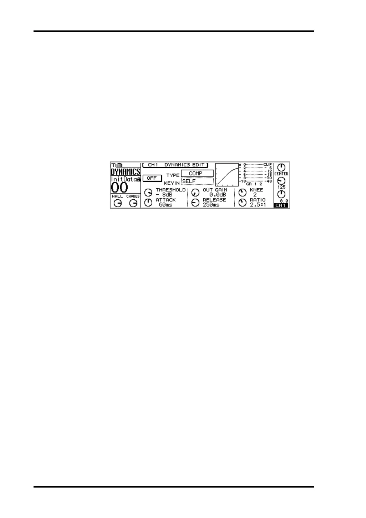 Dynamics processors are edited on DYNAMICS page 1, as shown below. Use the