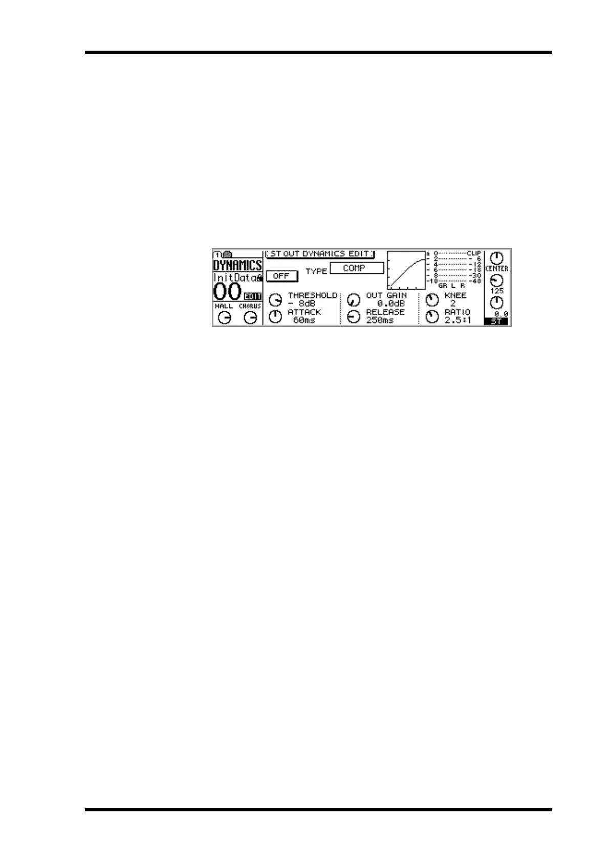 2. Use the [DYNAMICS] button to locate DYNAMICS page 1, as shown
