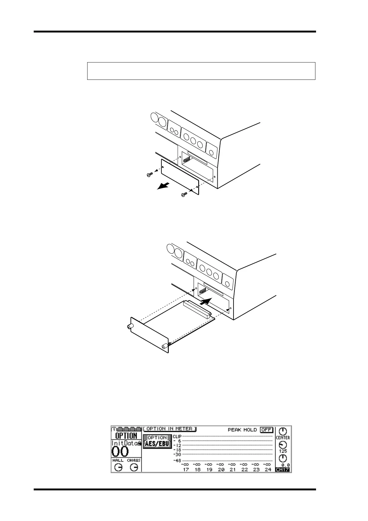 Warning: Turn off the 01V before installing an Option I/O card. Failure to do so is an