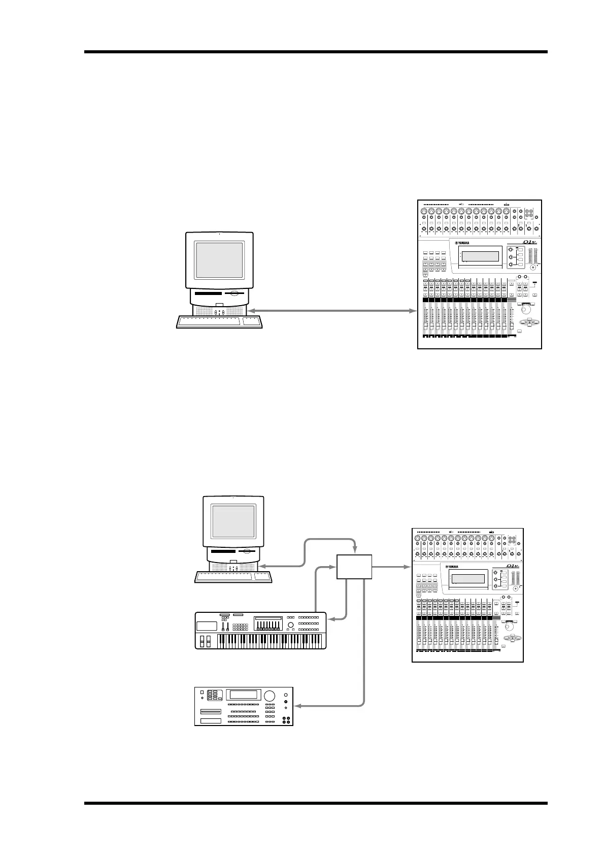 In this system, the 01V is connected to a personal computer without a MIDI interface