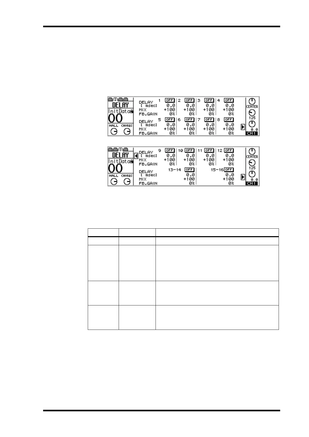 input channels 1 through 8 are on DELAY page 2, while those for input channels 9