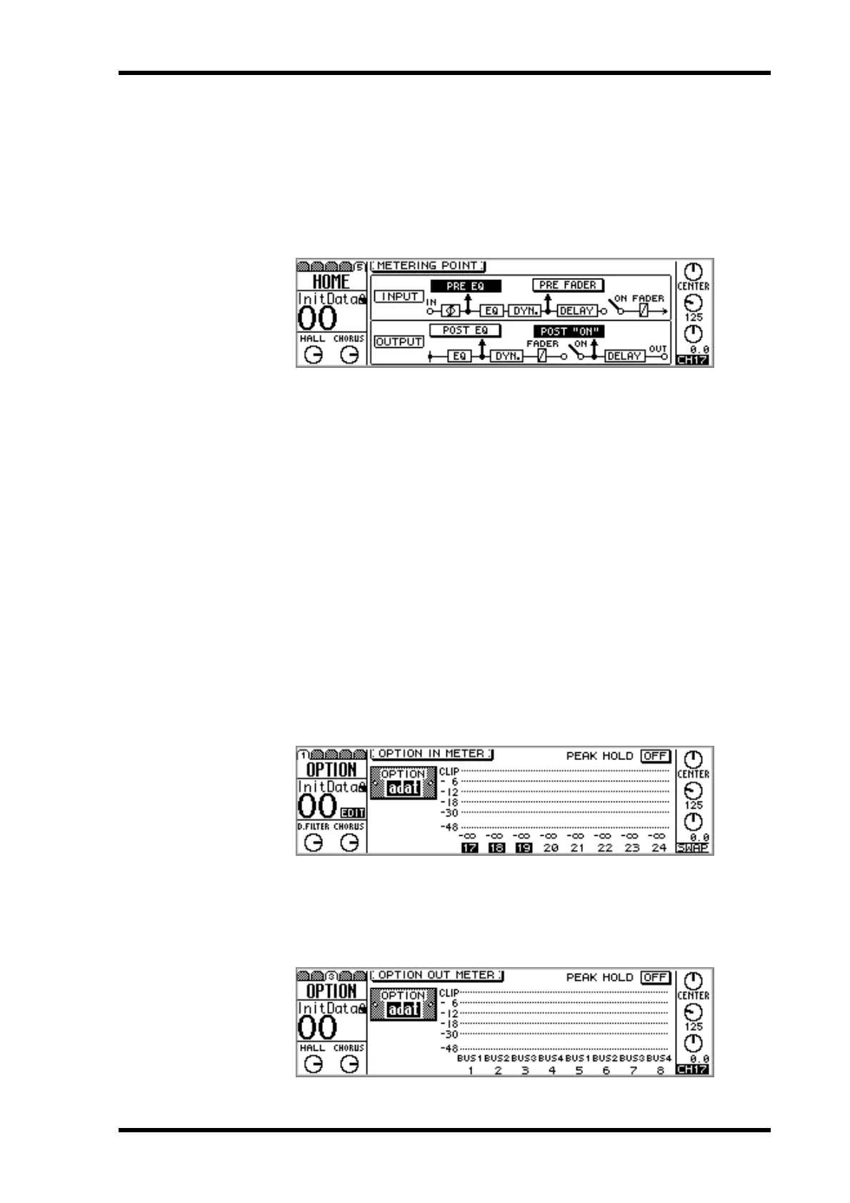 Signal level meters for input channels 17 through 24 and the Option I/O outputs are