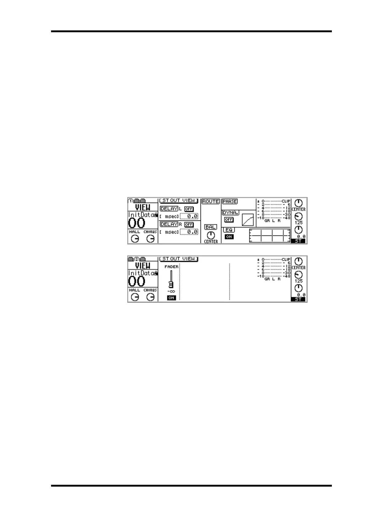 Settings for the stereo output can be viewed, and certain parameters adjusted on VIEW