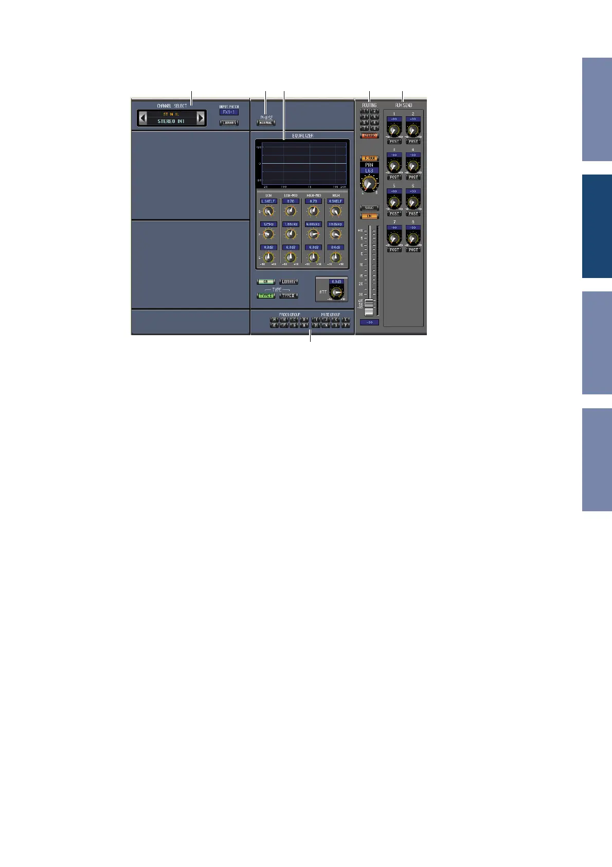 rently selected Stereo Input Channel. ROUTING buttons 1–8 are used to route the channel to the Bus