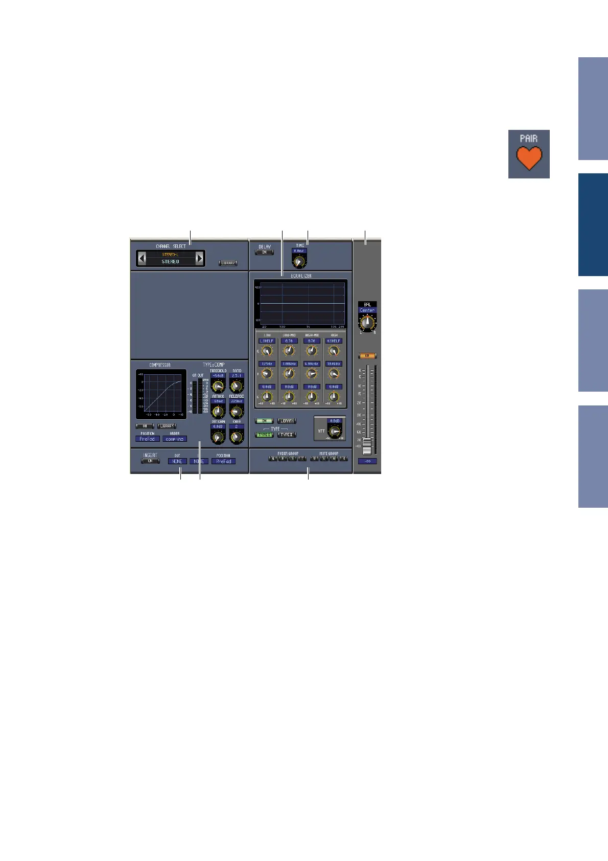 This section contains the Pair, Fader and Mute group functions for the currently selected