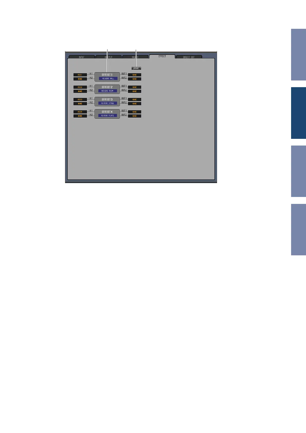 this section are used to select inputs and outputs for Effects processor 1–4.