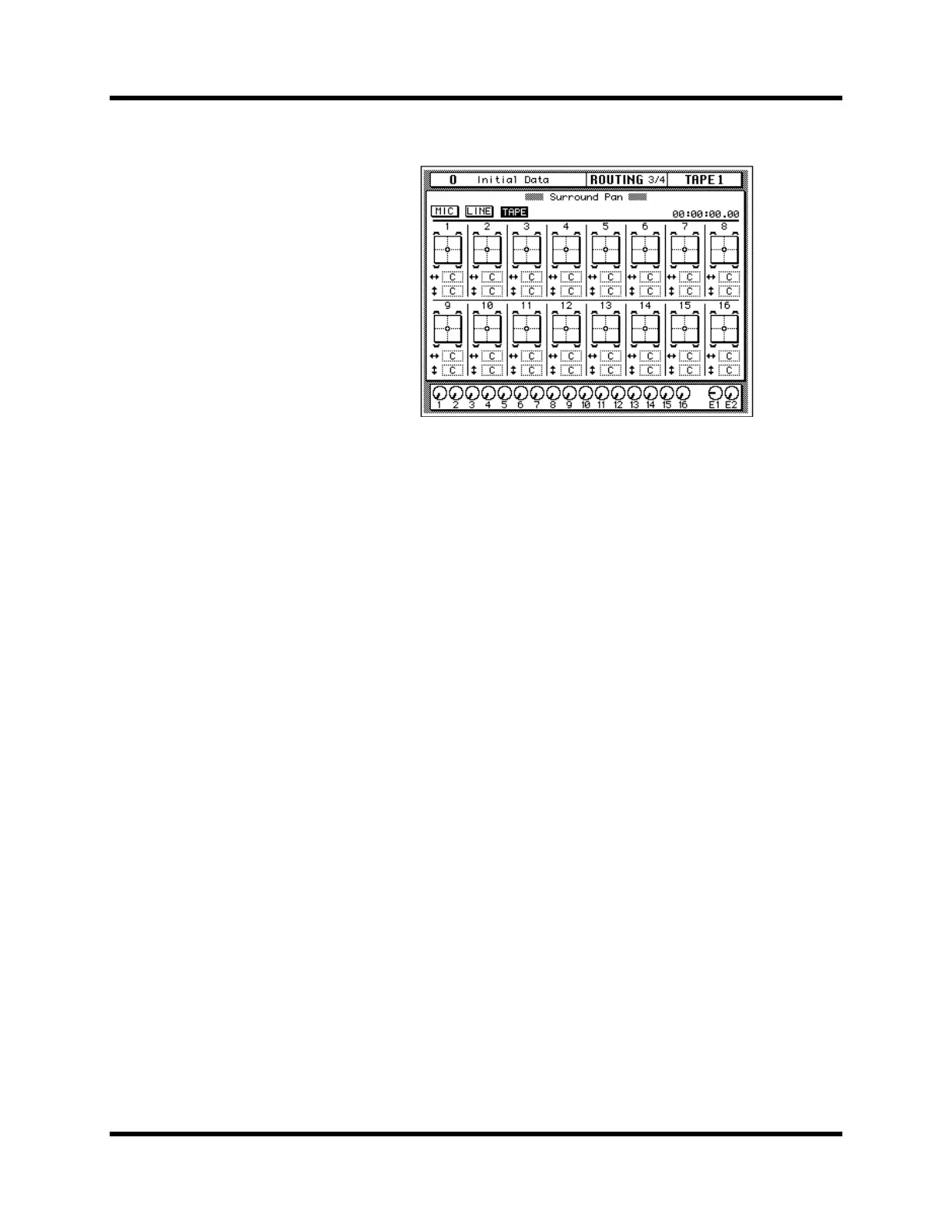 The TAPE page, shown below, contains surround pan controls for TAPE