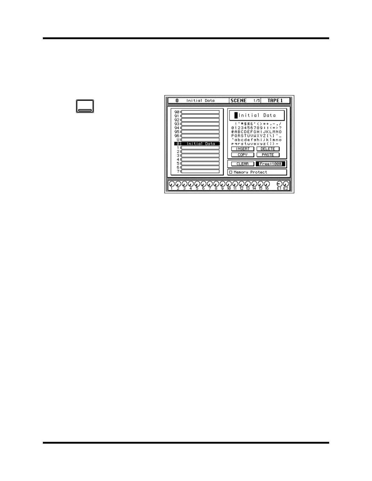 Beside the list of scene memories is the title edit field. The CURSOR buttons