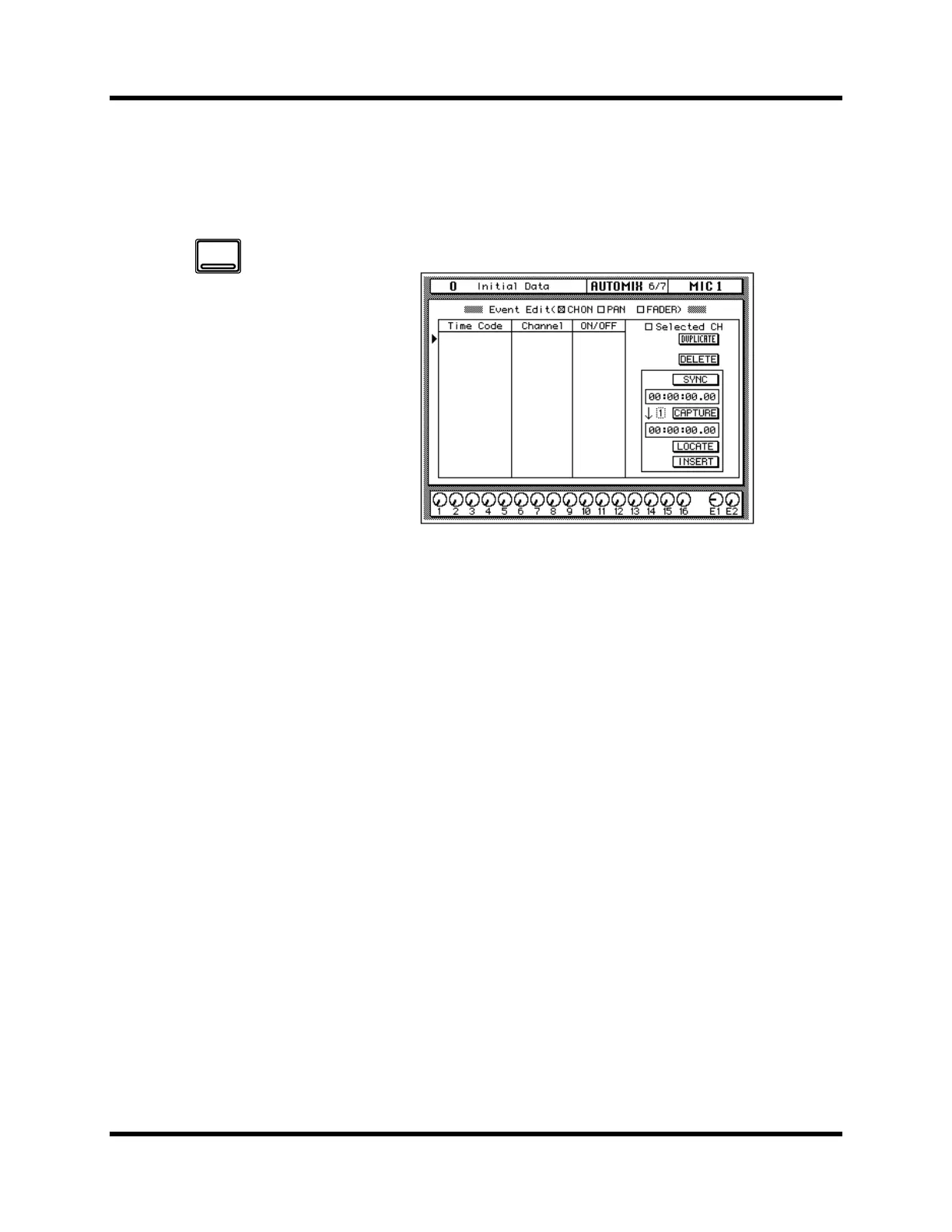 The Event Edit (CH ON, PAN, FADER) page, shown below, allows you