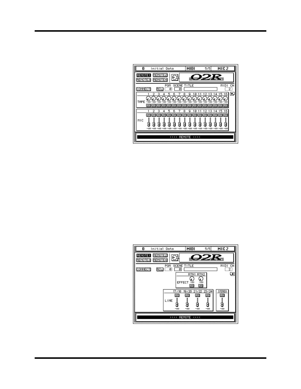 There are two pages for 02R remote control. Pages can be selected using the