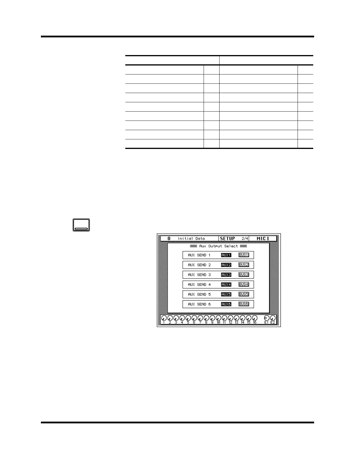 Shown below is the SETUP 2/4 page—Aux Output Select.