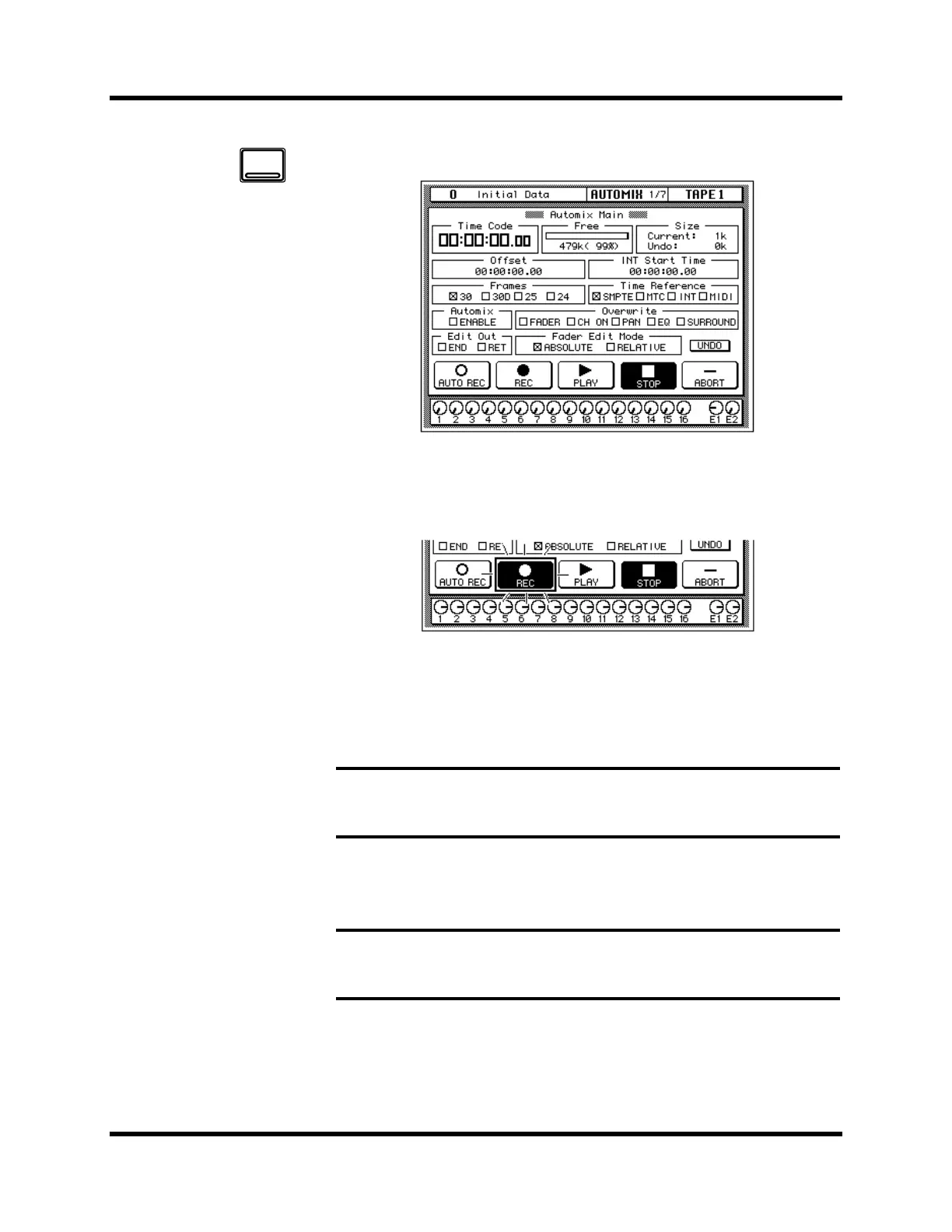 The “REC” icon will flash, indicating AUTOMIX RECORD READY status: