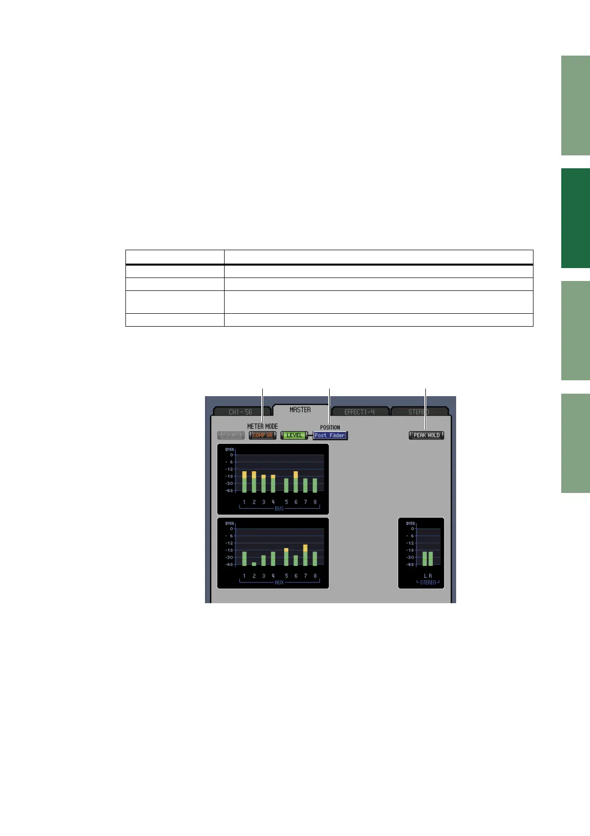 MASTER page This page displays the Bus 1-8, Aux 1-8, and Stereo meters (12 segments).