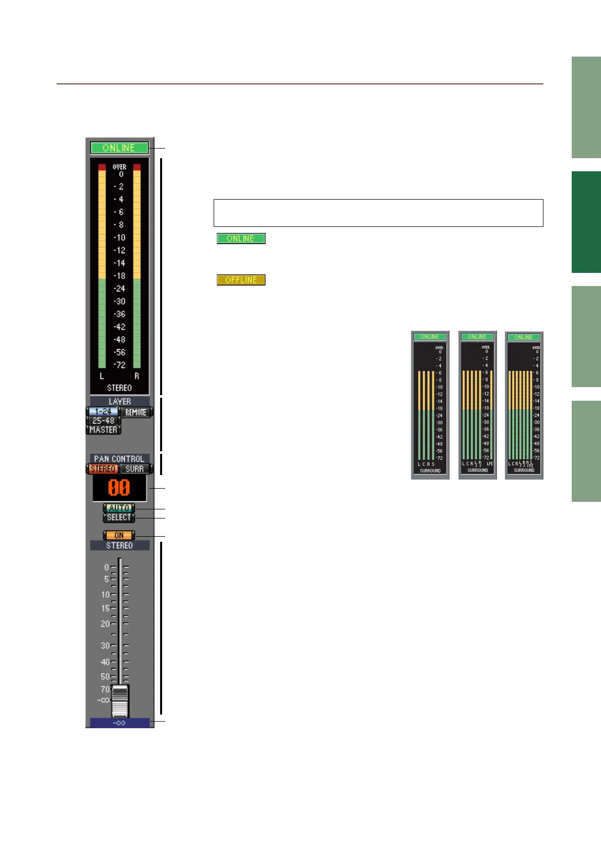 Channels is a rotary control when “STEREO” is selected, and a dot on a pan