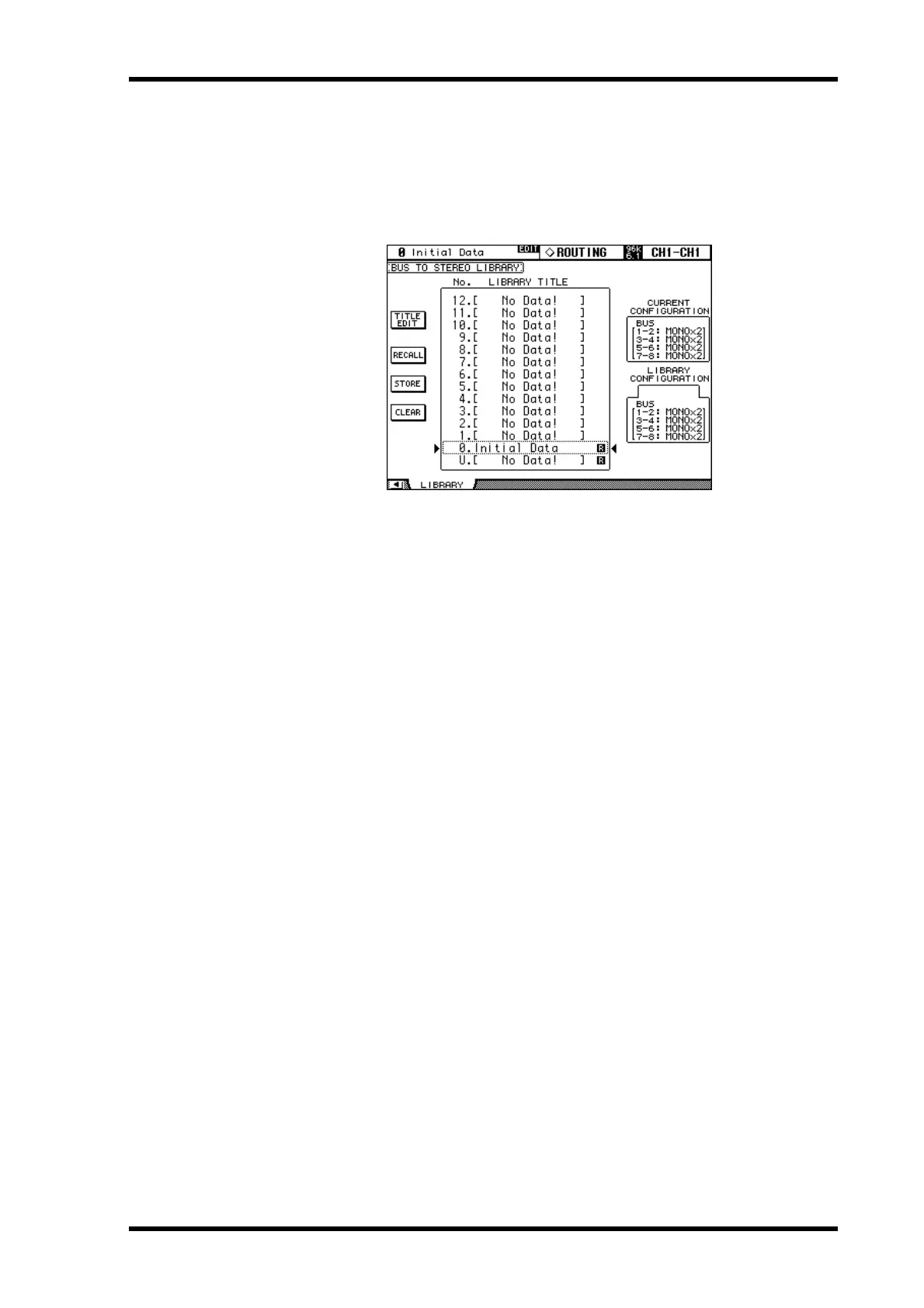 1 Use the ROUTING [DISPLAY] button to select the Bus to Stereo Library page.