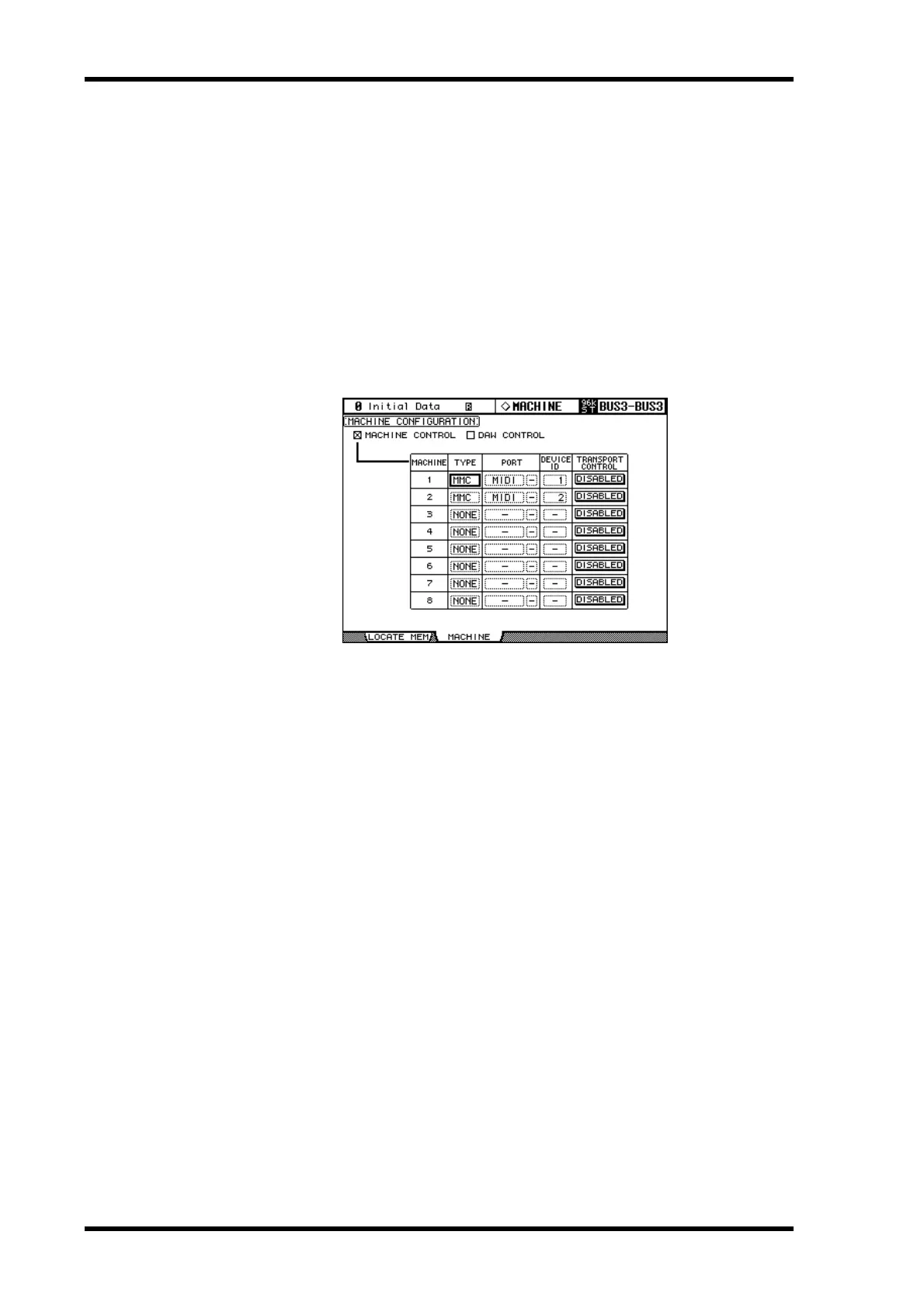Machines that support MMC can be controlled by connecting them to the 02R96’s MIDI,